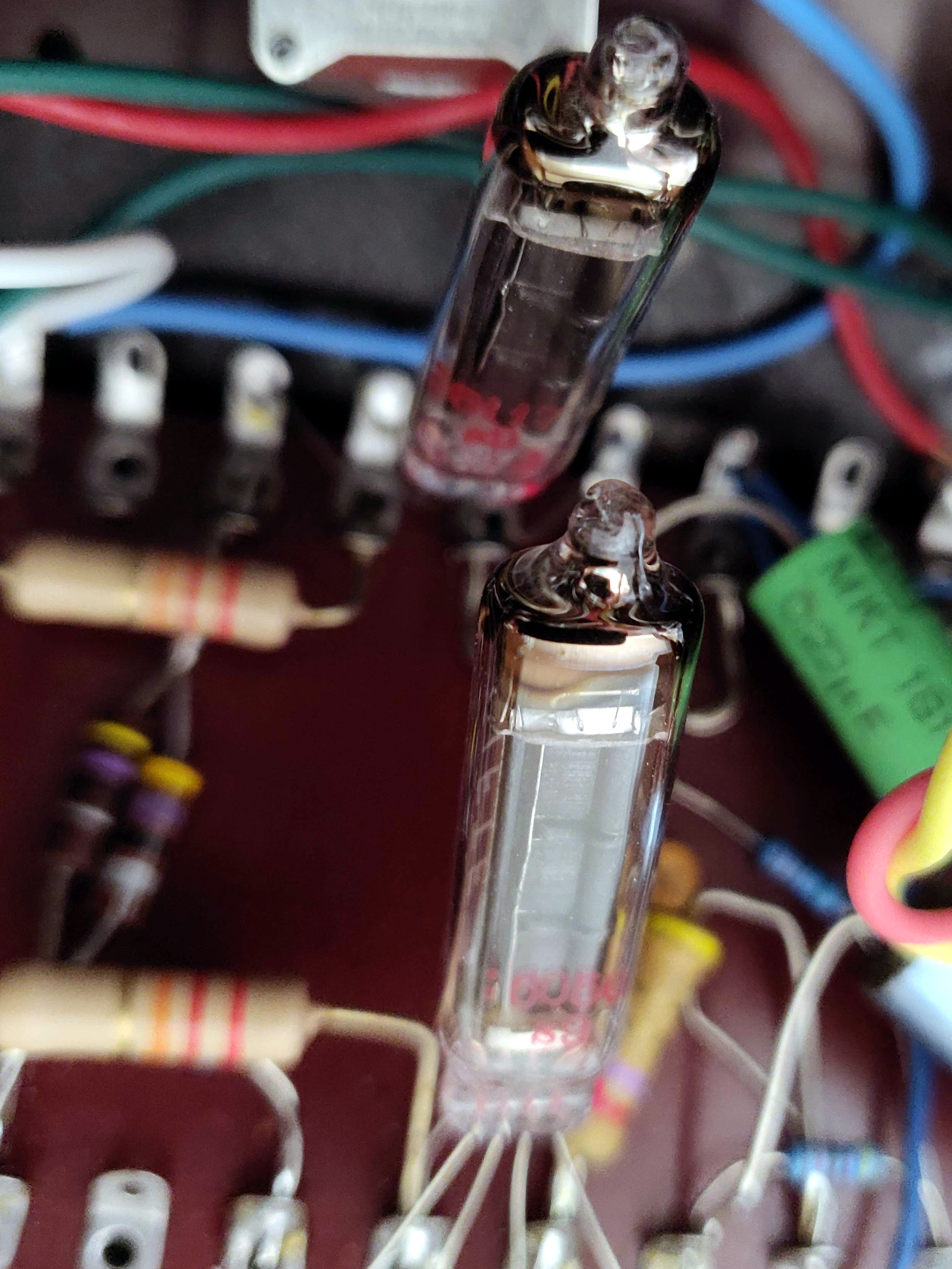 The preamp is a miniature-tube, point-to-point soldered construction based on NOS 6286 tubes.